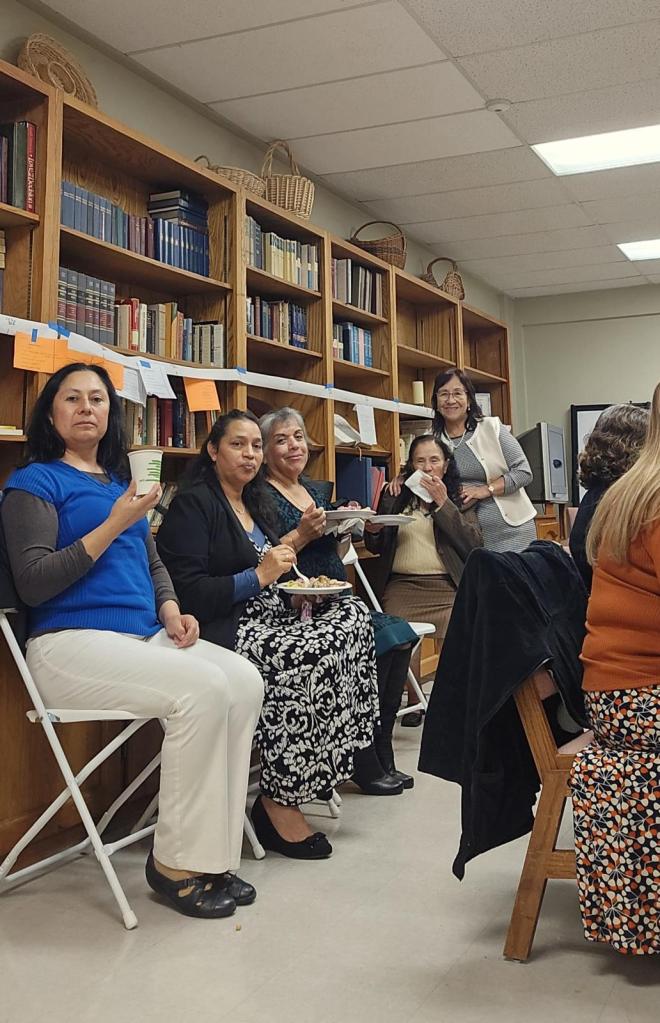 Después del servicio, celebramos con un hermoso momento de compañerismo, compartiendo una mesa diversa y deliciosa con comida peruana, colombiana, salvadoreña y americana. Este intercambio gastronómico reflejó la riqueza cultural de nuestra congregación y la alegría de caminar juntos como un solo cuerpo en Cristo.